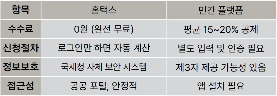 Q. 홈택스 vs 민간 세무 플랫폼, 뭐가 다르죠?