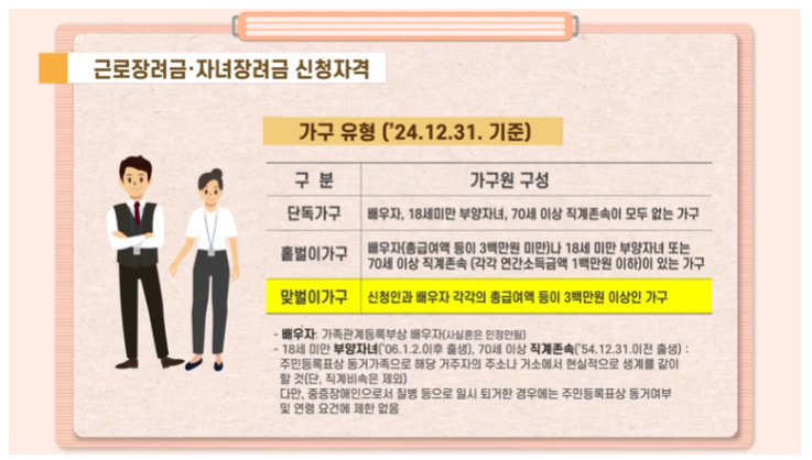 2024년과 비교해 2025년에는 ‘맞벌이 가구’의 소득 기준이 대폭 완화되었습니다.