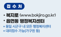 - 오프라인 신청: 읍면동 행정복지센터 방문