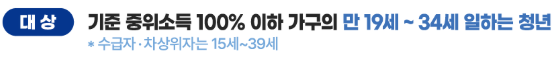 (수급자·차상위자는 만 15세 ~ 39세) - 소득: 기준 중위소득 100% 이하