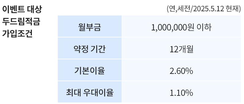 기본이율 2.6% + 우대이율 최대 4.6%로, 총 7.2%까지 이자를 받을 수 있는 기회입니다.
